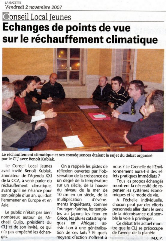 J'ai quitté mon boulot fin décembre . J'ai envie de voyager, et de voyager utile. Le changement du climat est en train de se faire et modifie profondément ma vie et celle de mes (éventuelles) enfants, petits-enfants, arrières petits-enfants et des 8 milliards de terriens qui vivront sur le reste de notre planète en 2100.