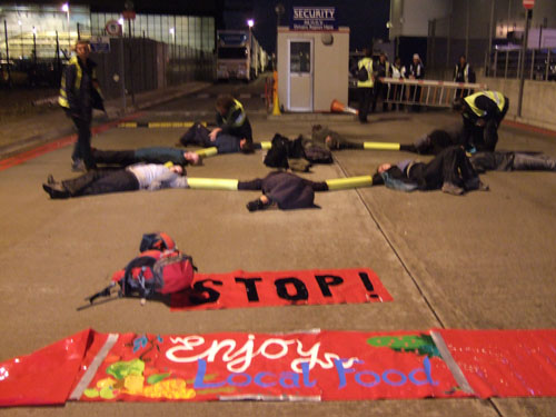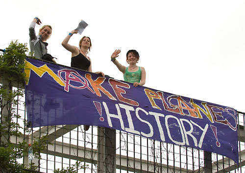 Selon les activistes du camp, le transport aérien d'aliments a augmenté de 140 % entre 1992 et 2002. Les émissions de CO2 générées par les transports aériens représentent 14 % du bilan carbone de notre nourriture.
