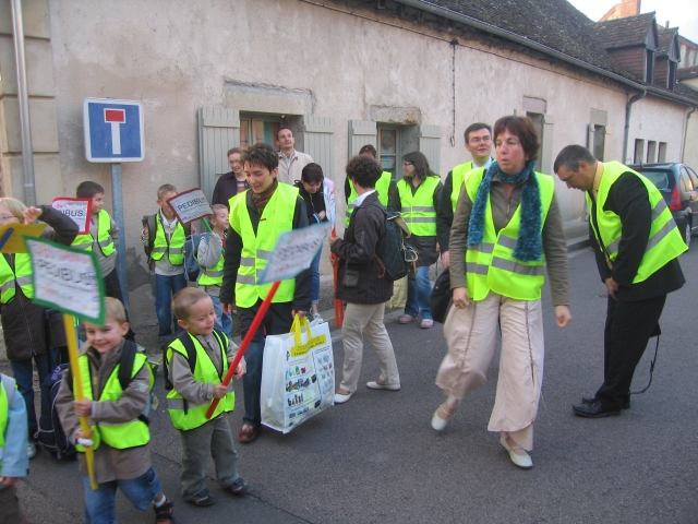 J'ai enchainé samedi avec le 1er pédibus d'Autun. Il y avait environs 25 enfants et presque autant d'adultes. J'ai filmé avec l'appareil photo du boulot et j'ai monté le film dans la foulée. C'est la première fois que je le fais, en utilisant Window Movie Maker. Si vous connaissez un LL qui va bien, merci de me passer l'info.