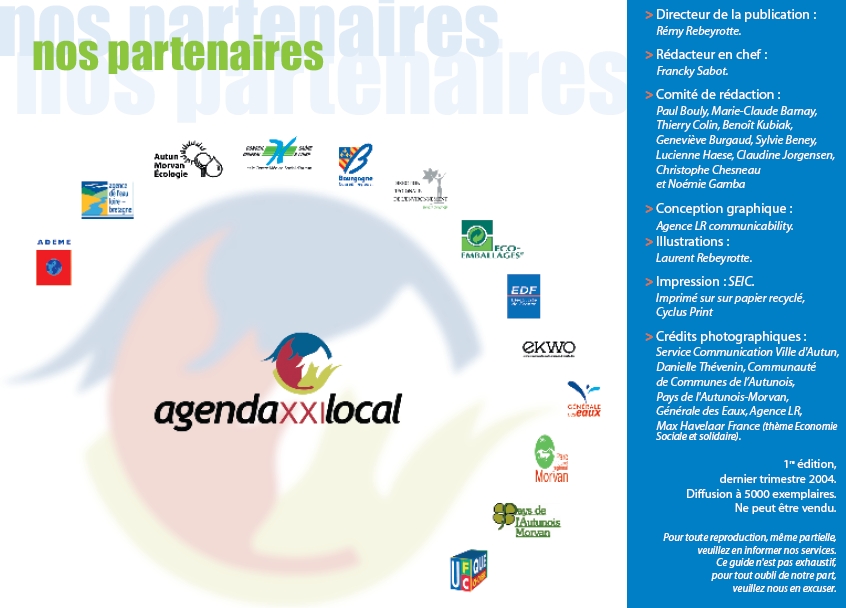 Je travaille comme chargé de mission pour le programme de développement durable de la Communauté de Communes de l’Autunois. J’ai notamment animé l’équipe qui a réalisé le « guide pratique de l'écocitoyen » avec l'aide de Francky SABOT qui a dirigé la rédaction du guide. Cette initiative a reçu un Ruban du développement durable en 2005, remis par M. DEBRE, président de l'Assemblée Nationale et Mme OLIN, ministre de l'écologie et du développement durable.