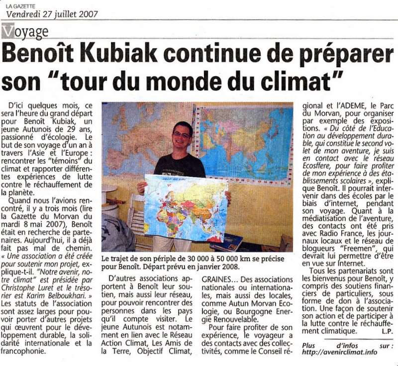 L'article que j'ai envoyé pour présenter mon projet dans le magasine Globe-Trotters est ici. La publication aura peut être lieu dans le numéro de septembre-octobre.